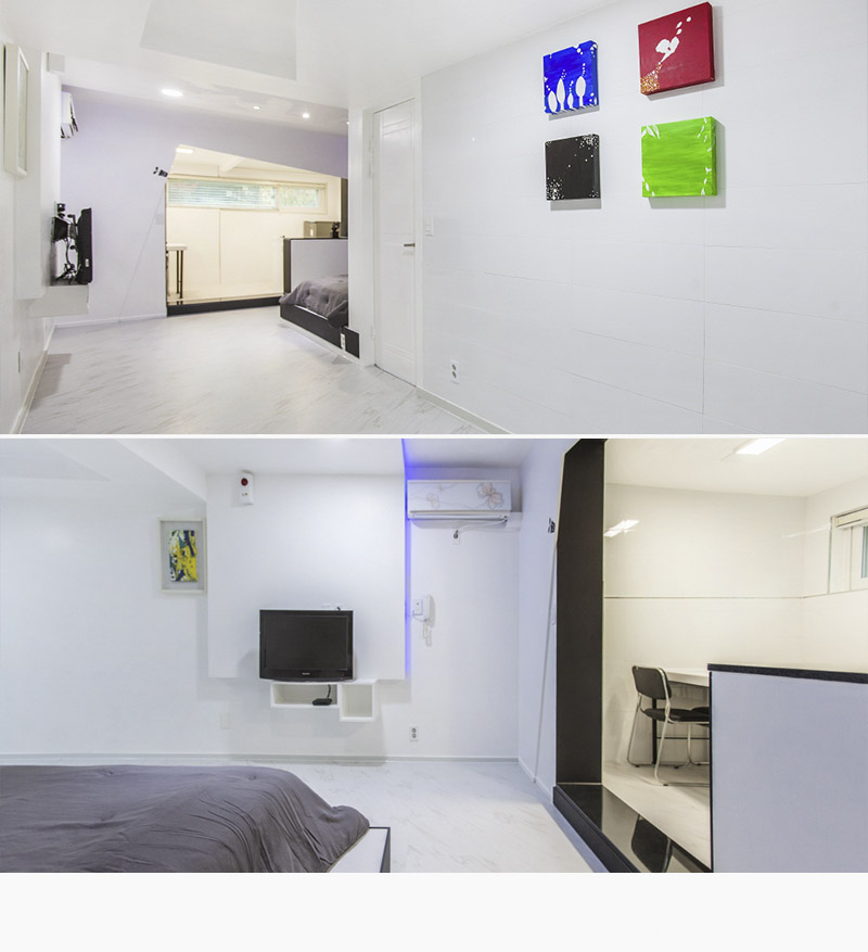 침대, 벽걸이TV, 스카이라이프, DVD, 에어컨, 티테이블, 쇼파, 화장대, 식탁, 냉장고,