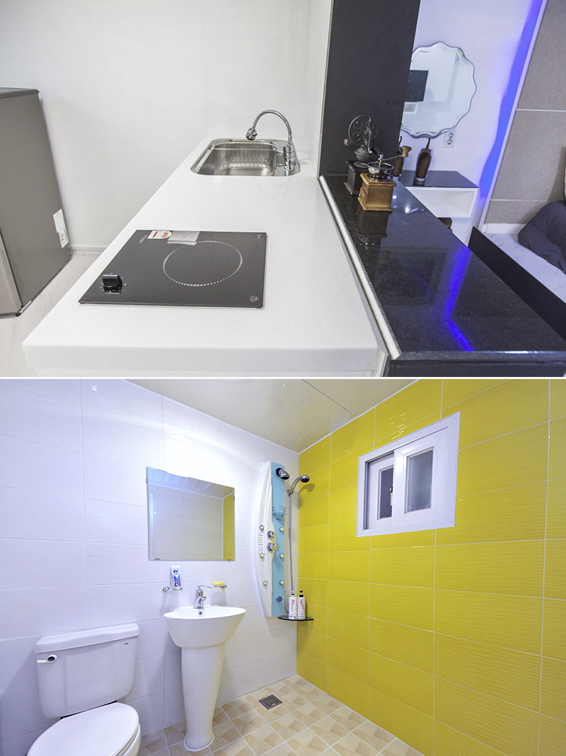 전기밥솥, 전자레인지, 커피포트, 취사도구, 헤어드라이기, 욕실(간단한세면도구)