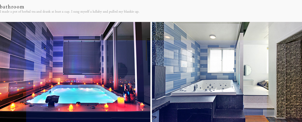 별도의 스파공간내 자리한 각각 조명이 밝혀주는 3인용 넓은 제트스파